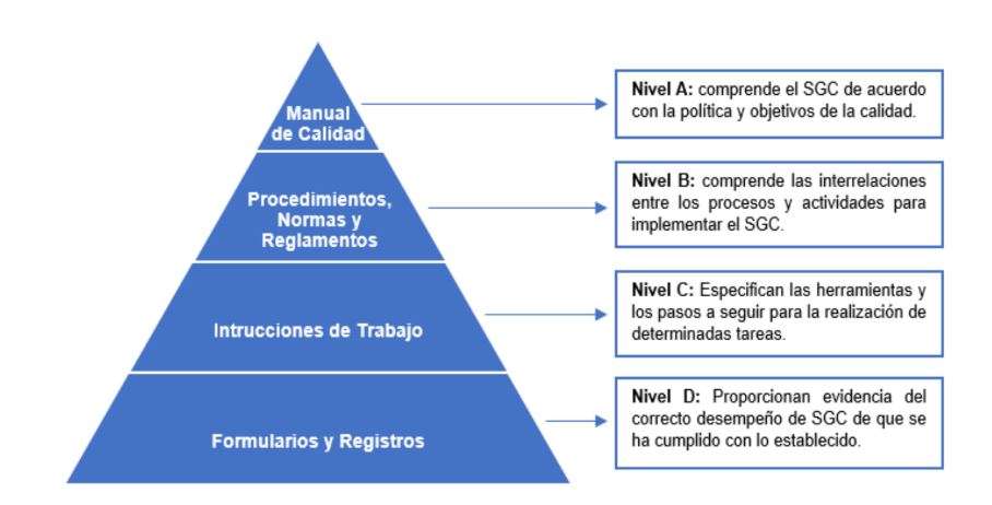 La estructura documental del SGC está organizada de forma jerárquica. (Ver fig.1)